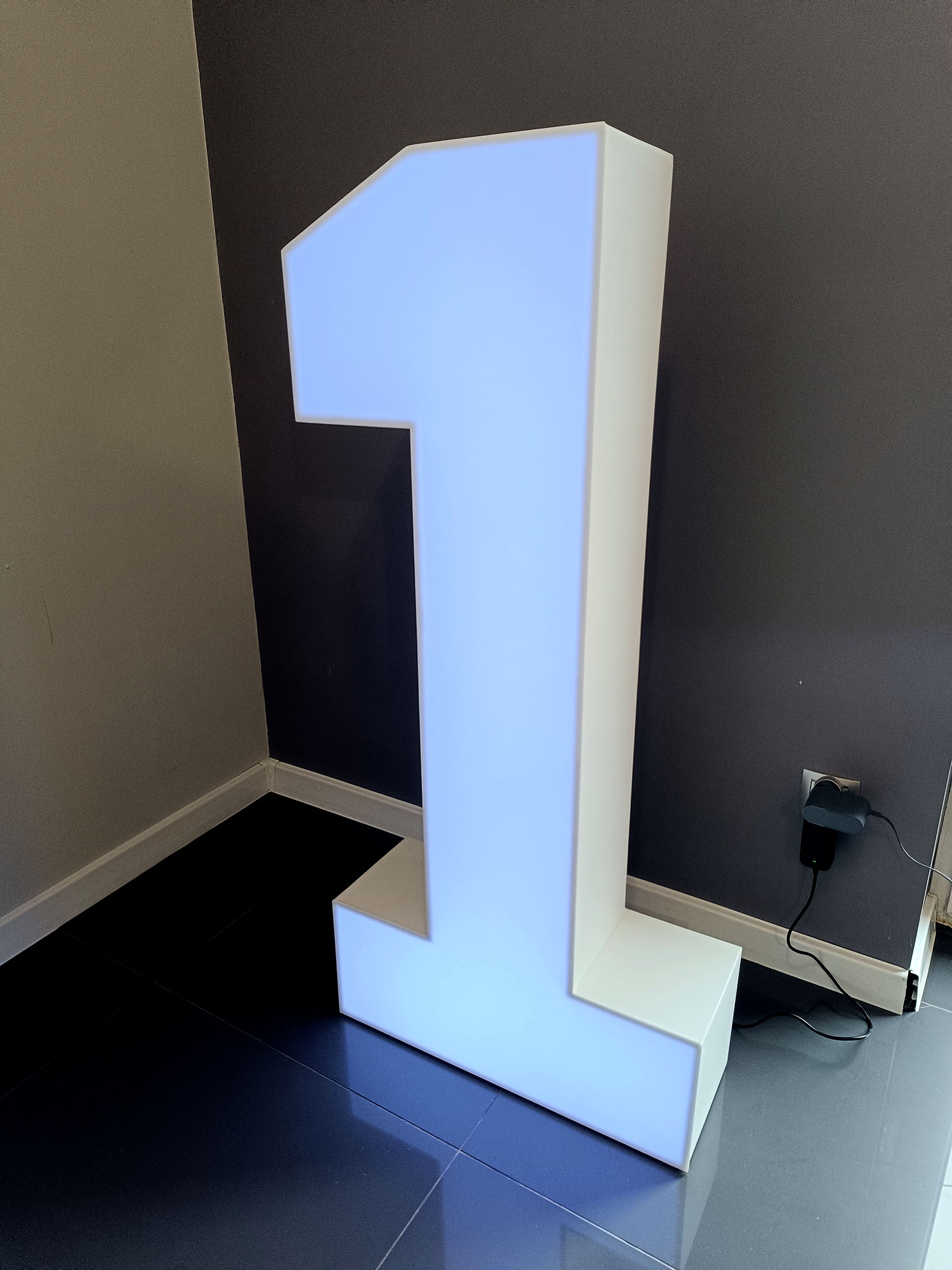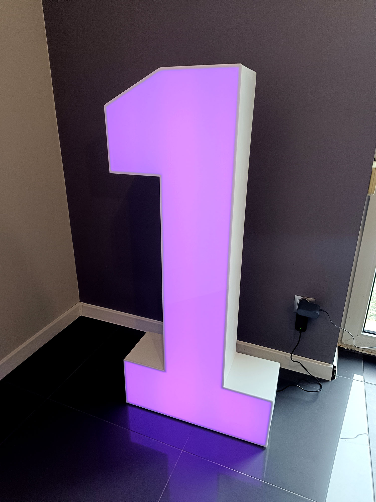 Podświetlana cyfra 1 w technologii neon 3D to uniwersalny element dekoracyjny, który można zestawiać z innymi cyframi, tworząc dowolne daty, wiek lub rocznice. Doskonale sprawdzi się na urodzinach, eventach firmowych i sesjach zdjęciowych.