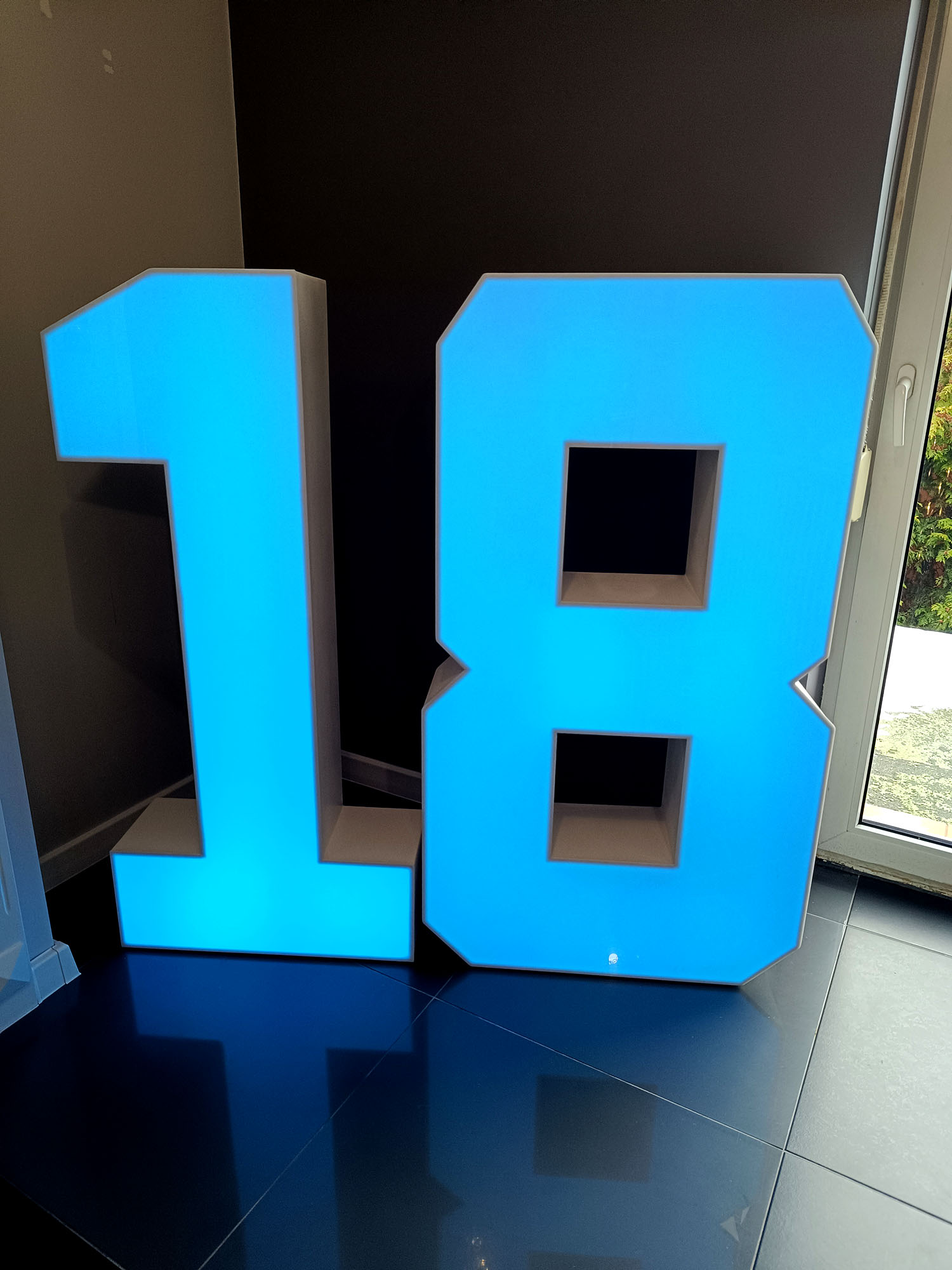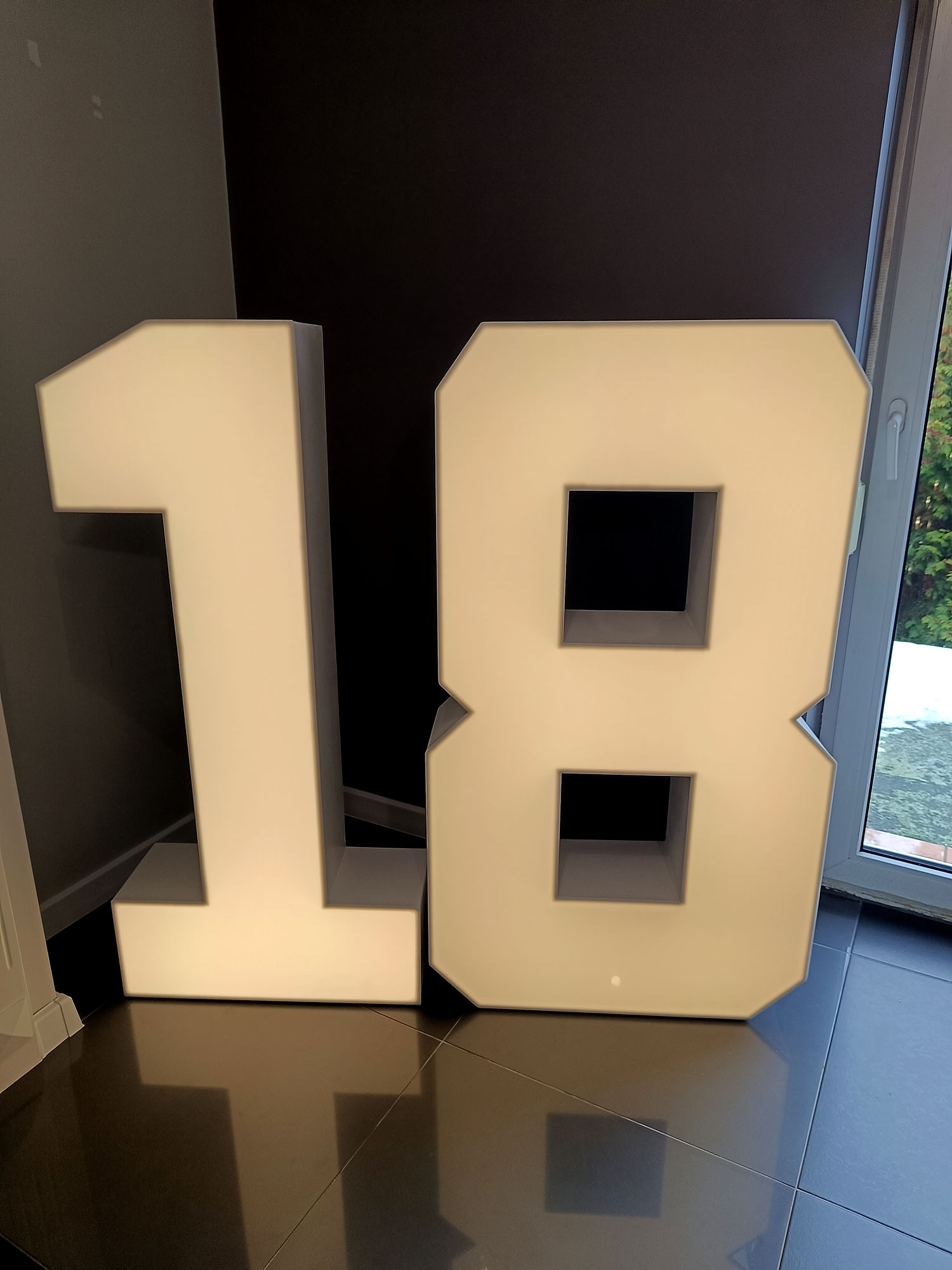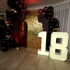Podświetlana cyfra 18 w technologii neon 3D to dekoracja, która natychmiast przyciąga uwagę i tworzy efekt „wow”. Doskonale sprawdzi się jako tło do zdjęć, element strefy wejściowej lub centralna ozdoba sali. Możliwość wyboru koloru światła pozwala dopasować ją do stylu wydarzenia i pozostałych dekoracji.