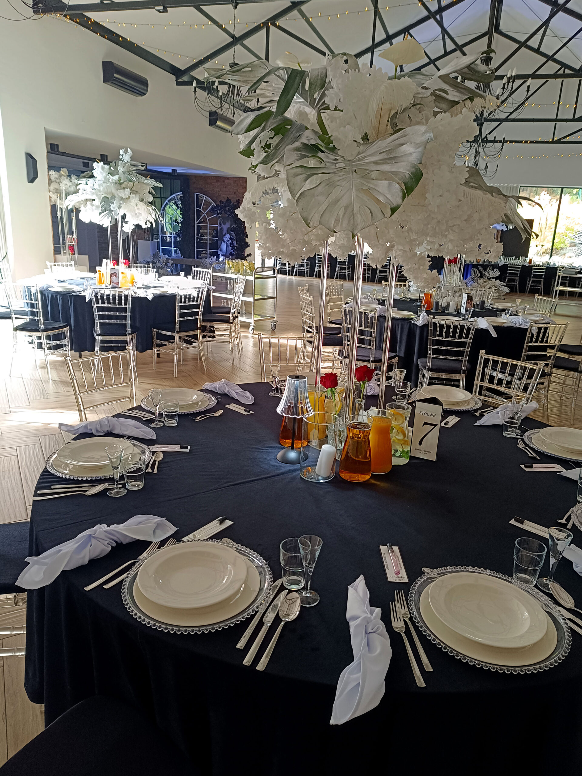 Połączenie transparentnej formy i eleganckich akcentów czerni sprawia, że taka dekoracja to stylowy, uniwersalny i efektowny wybór do nowoczesnych aranżacji eventowych.