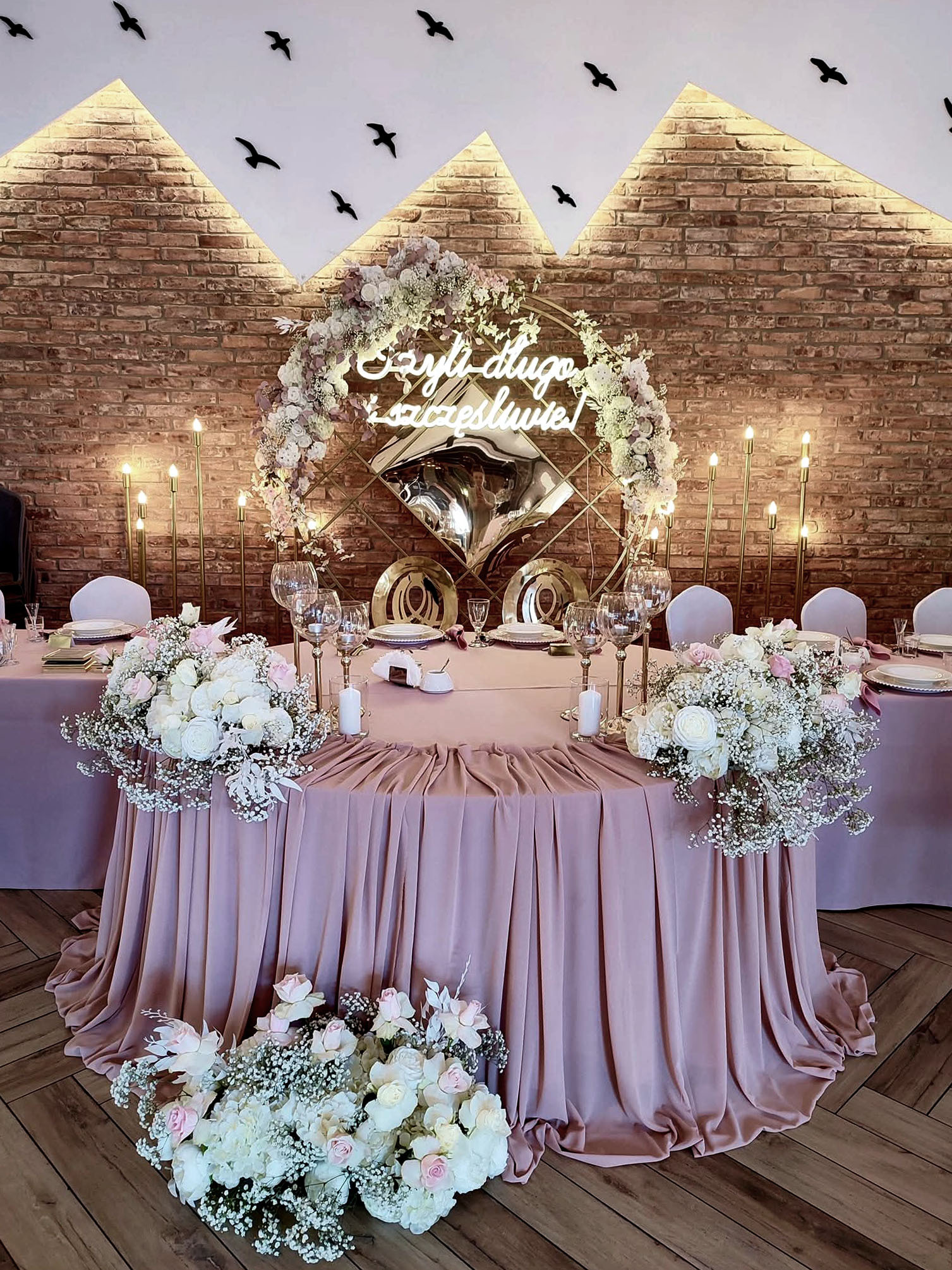 Nadaje dekoracjom elegancji i subtelnego uroku.Romantyczny odcień brudnego różu – idealny do wesel w stylu rustykalnym, boho i glamour.
