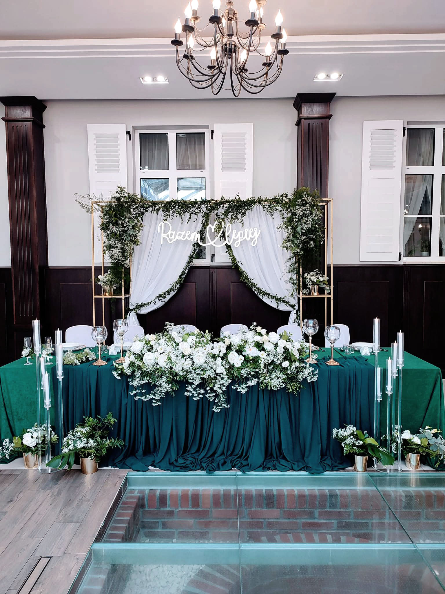 Obrus ten tworzy eleganckie, stylowe aranżacje, które zachwycają spójnością. Jego odcień butelkowej zieleni idealnie podkreśla dekoracje kwiatowe. To świetny wybór na przyjęcia wymagające stonowanej luksusowej kolorystyki.
