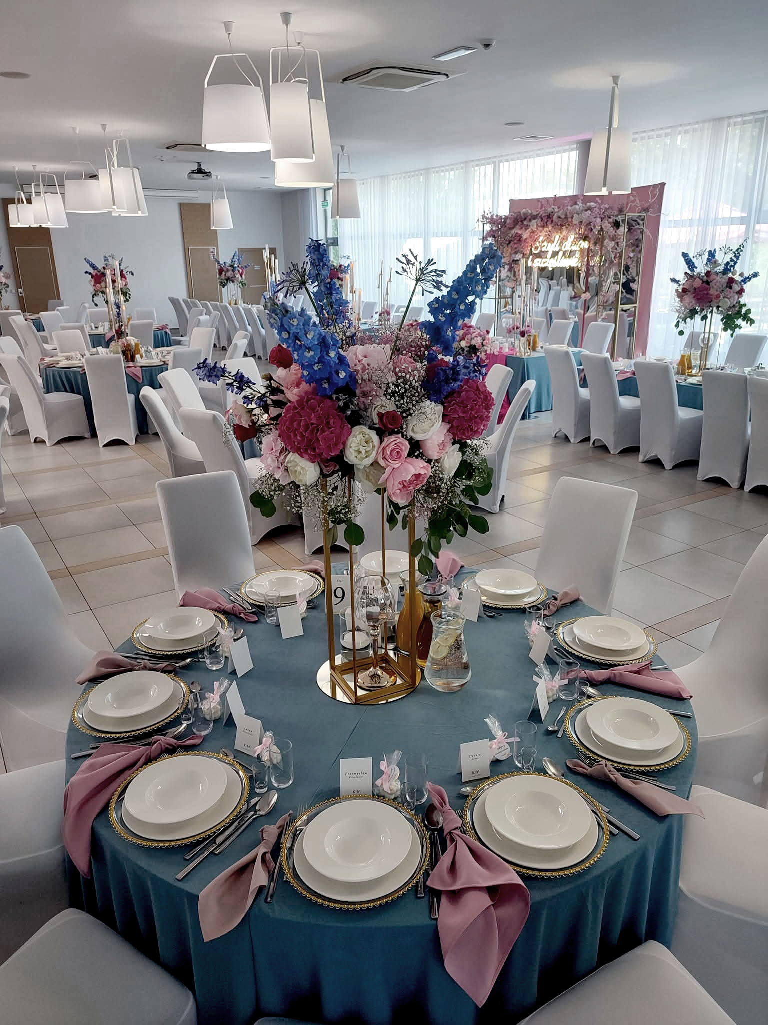 Dzięki temu idealnie nadaje się na eventy, gdzie liczy się każdy detal.Uniwersalna kolorystyka – dusty blue jest spokojny i elegancki, nadaje wnętrzom harmonii.