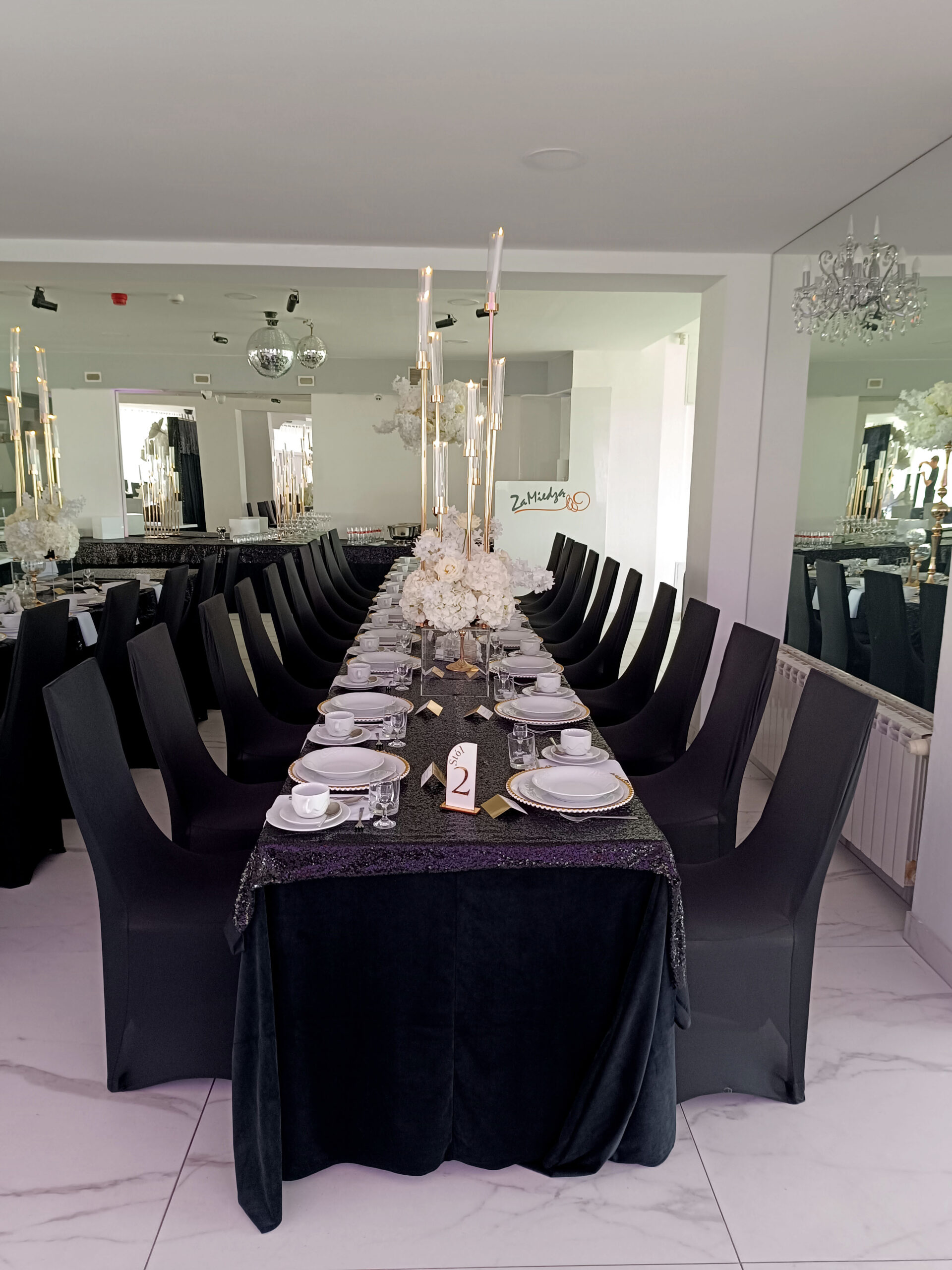 Ten obrus w głębokiej czerni idealnie wpisuje się w aranżacje eleganckich przyjęć. Velvet w tym kolorze daje spektakularny efekt, szczególnie w połączeniu z metalicznymi akcentami. Sprawdza się podczas gal, bankietów, sesji zdjęciowych i wesel w stylu glamour.