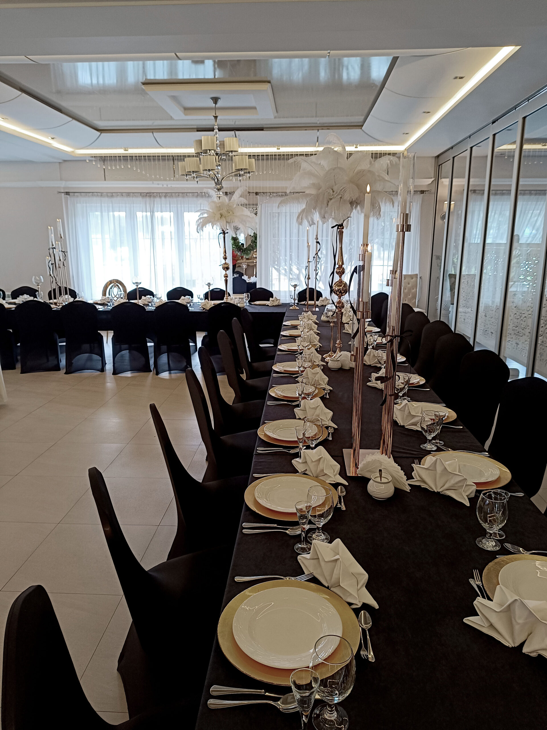 Obrus układa się równomiernie i efektownie.Uniwersalny styl – pasuje do glamour, industrial, black&white i modern elegance.