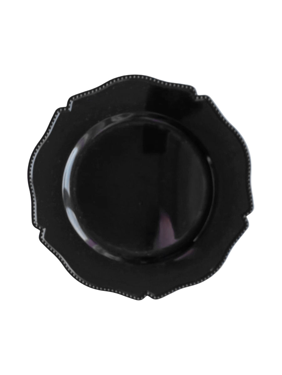 Nowoczesny i elegancki podtalerz w kolorze czarnym, idealny do aranżacji glamour, black & gold, industrialnych i minimalistycznych. Tworzy piękny kontrast z jasną zastawą.