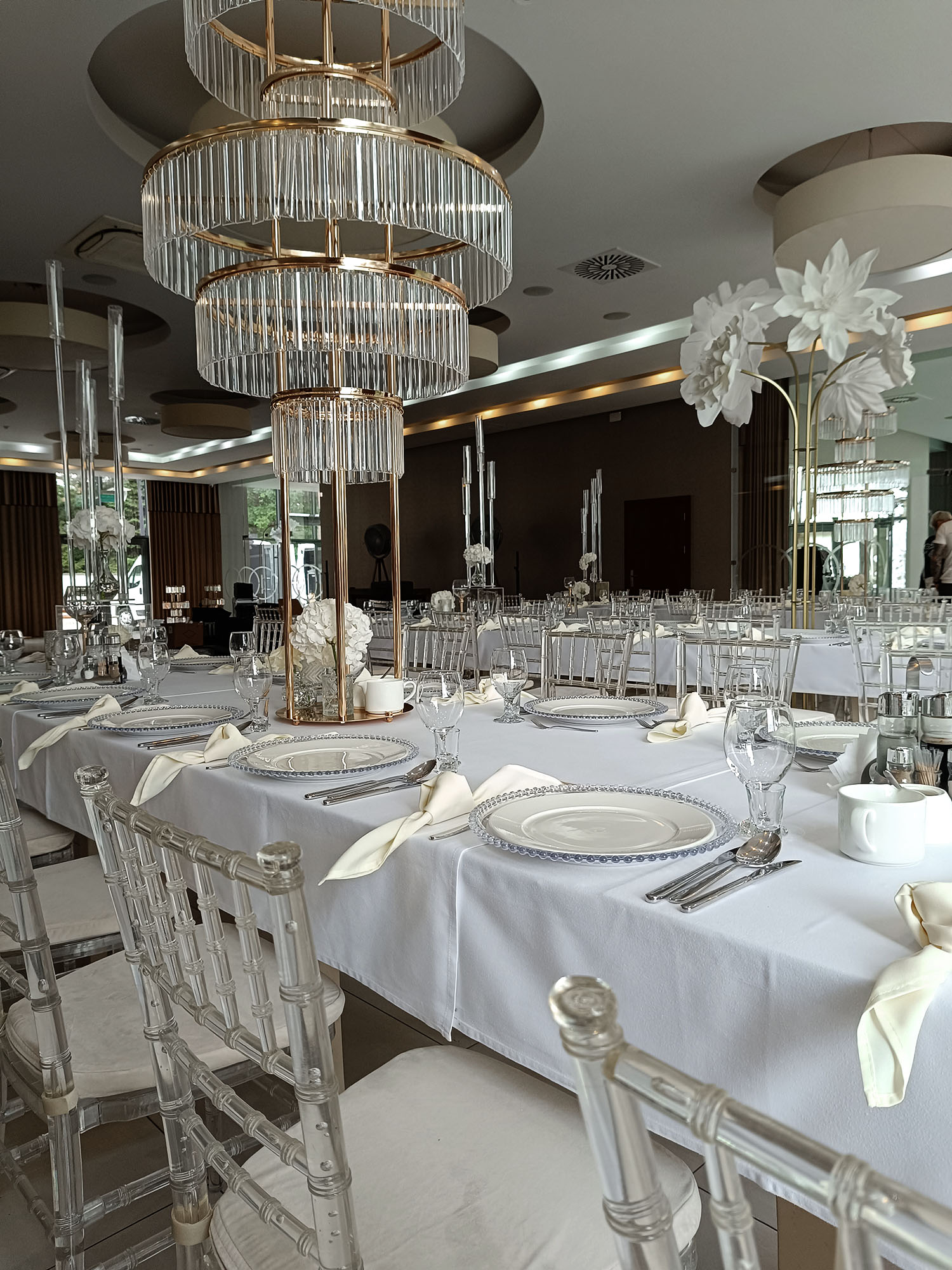 Uniwersalny transparentny podtalerz z dekoracyjnymi kulkami, który pasuje do praktycznie każdego stylu — klasycznego, nowoczesnego, glamour, czy boho. Podkreśla zastawę, nie przytłaczając dekoracji.
