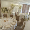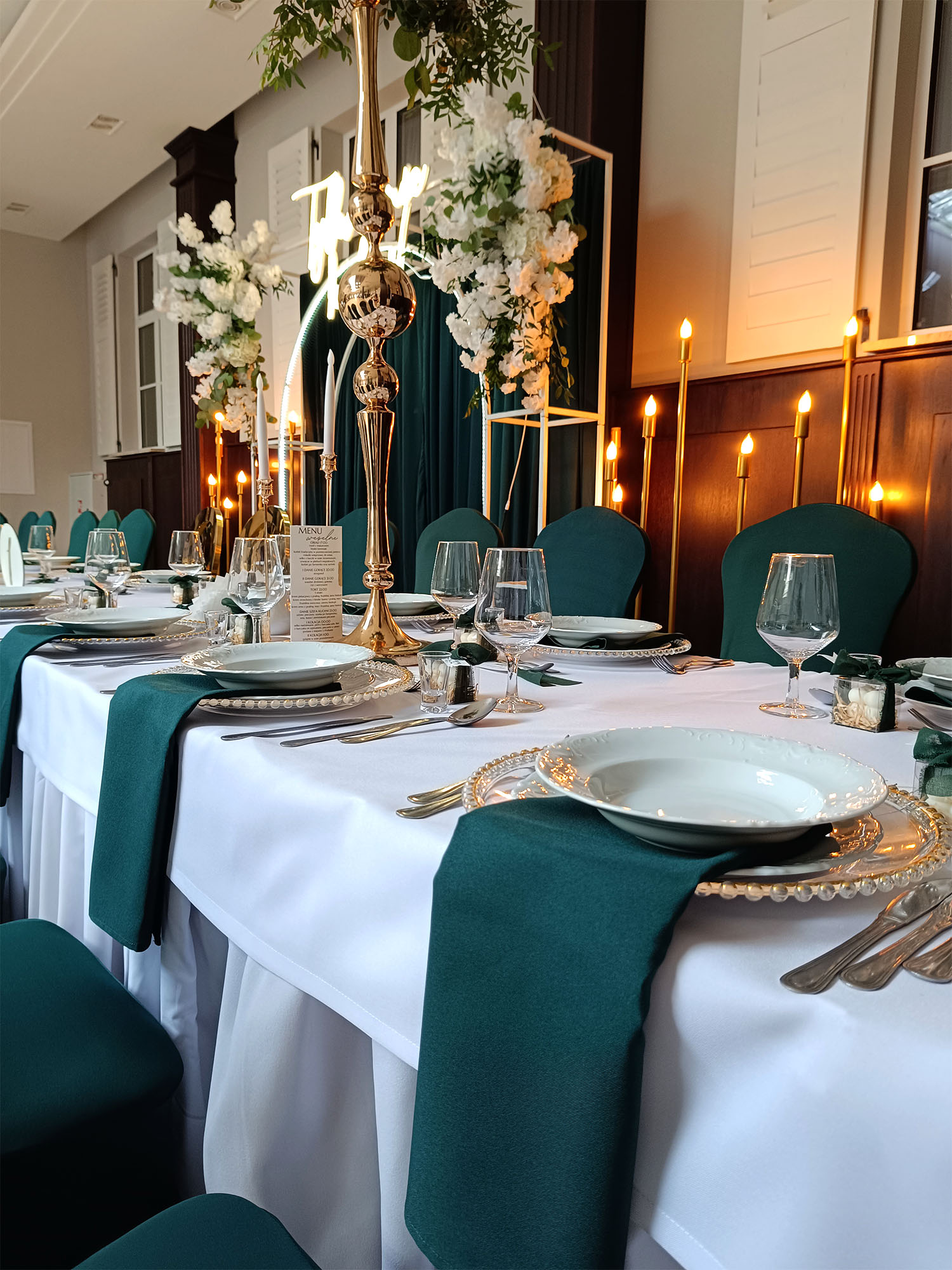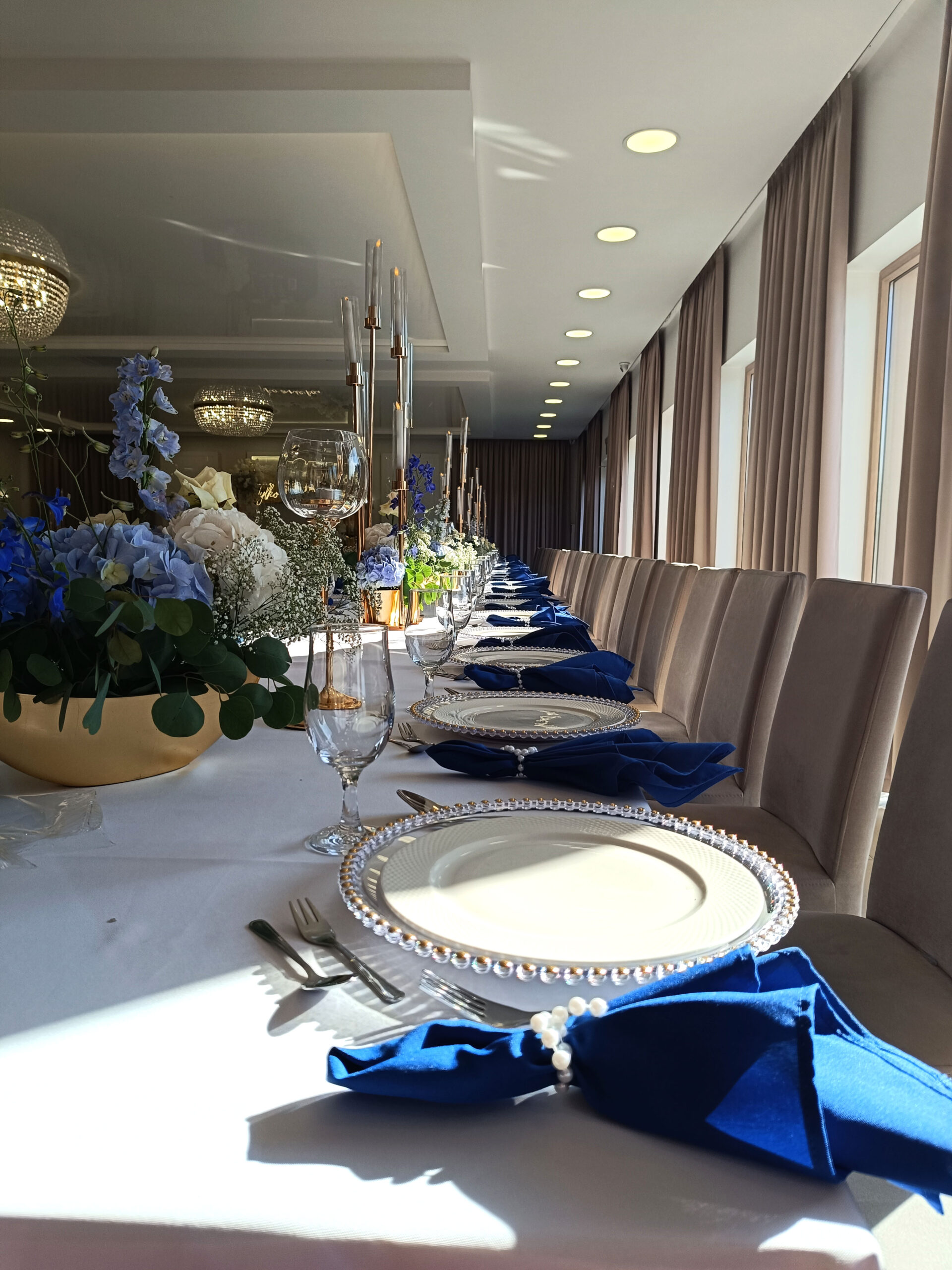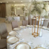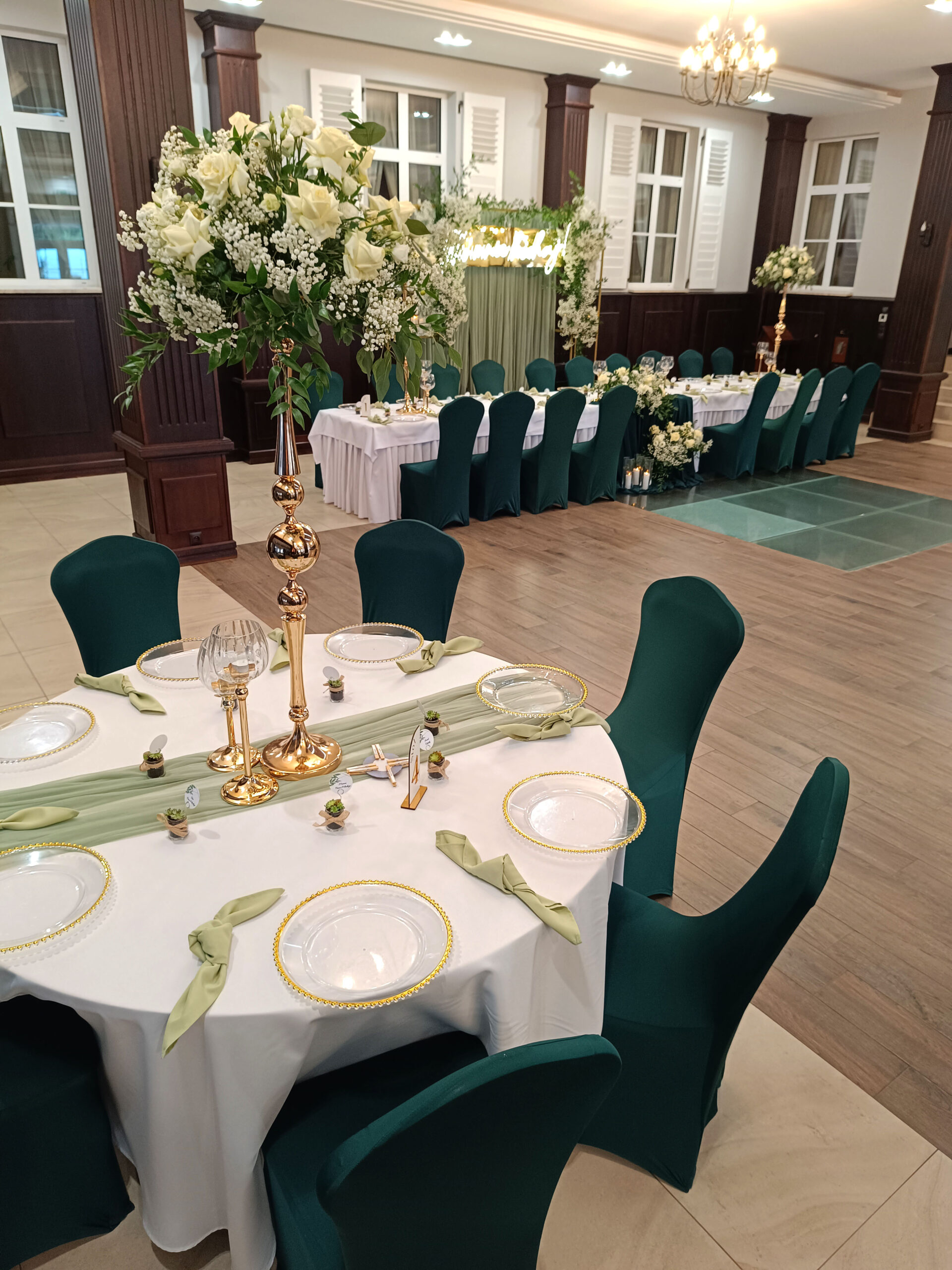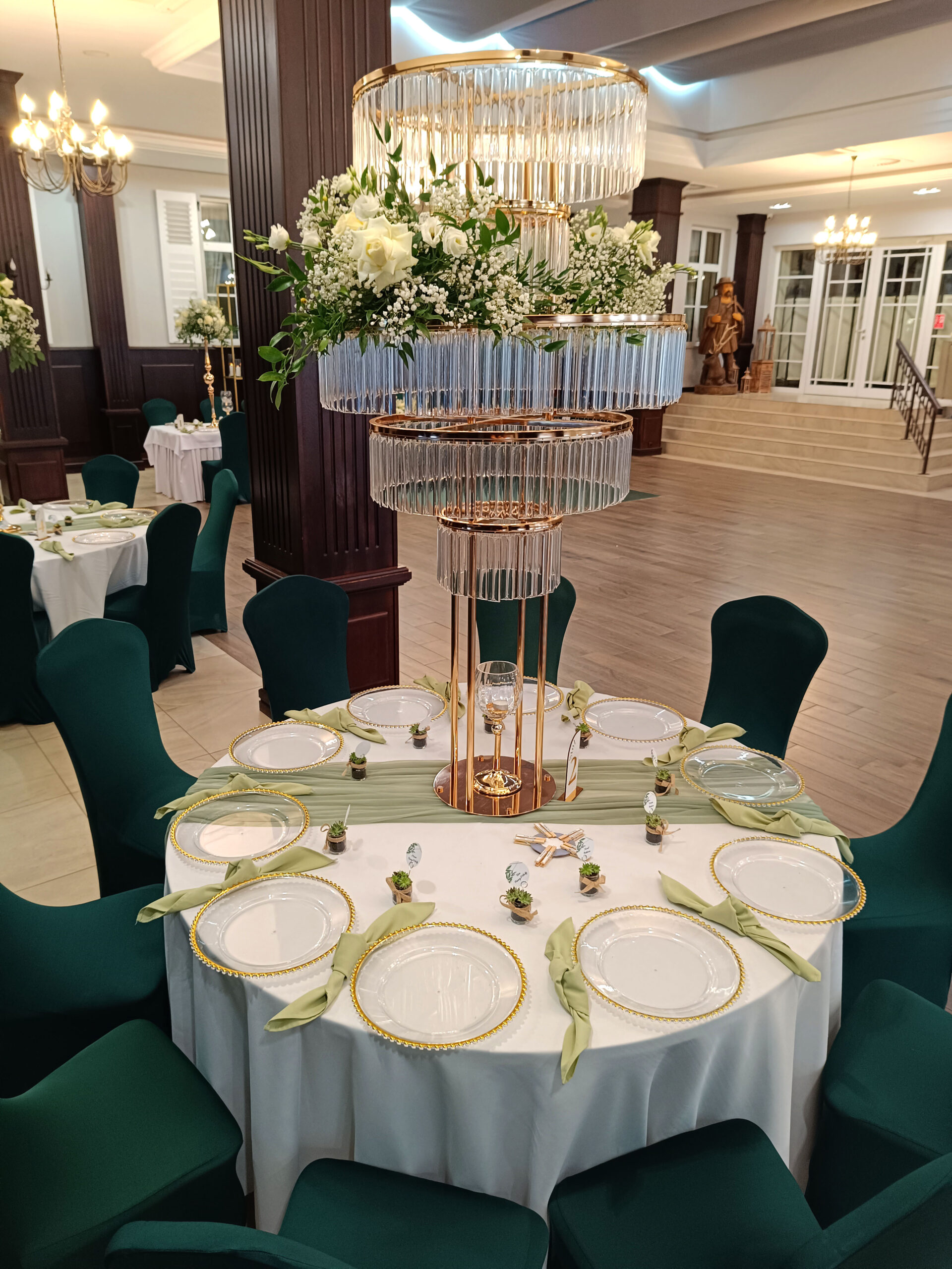 Transparentny podtalerz z delikatnymi złotymi kuleczkami to subtelna, ale bardzo elegancka propozycja. Idealny na wesele, komunię, chrzciny i dekoracje o lekkim, eleganckim charakterze.