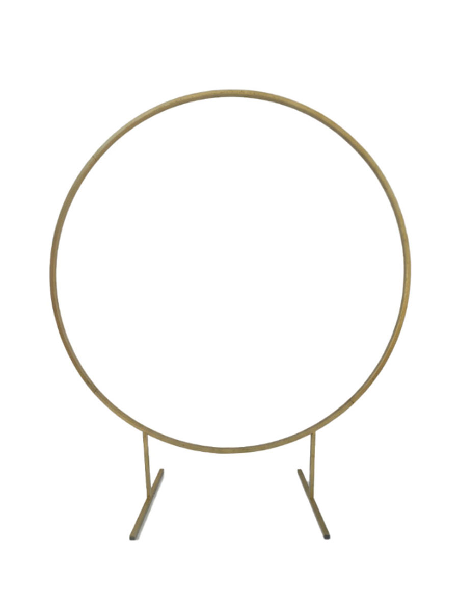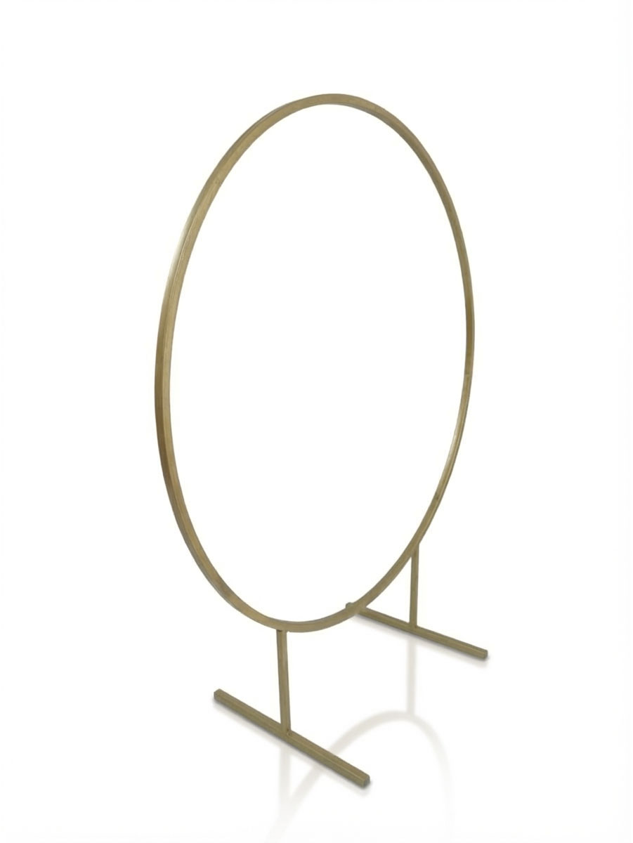 Metalowy stelaż koło wykonany z grubego profilu to idealna baza pod dekoracje kwiatowe, balonowe i świetlne. Doskonale prezentuje się podczas ceremonii plenerowych oraz w salach weselnych.