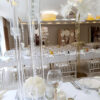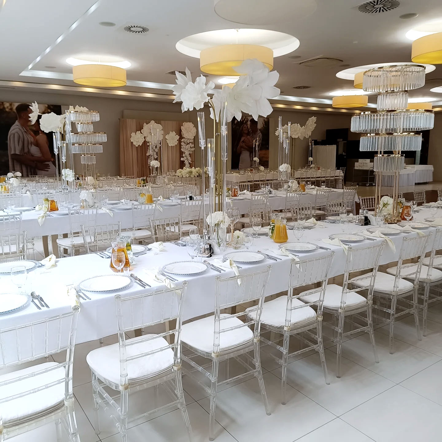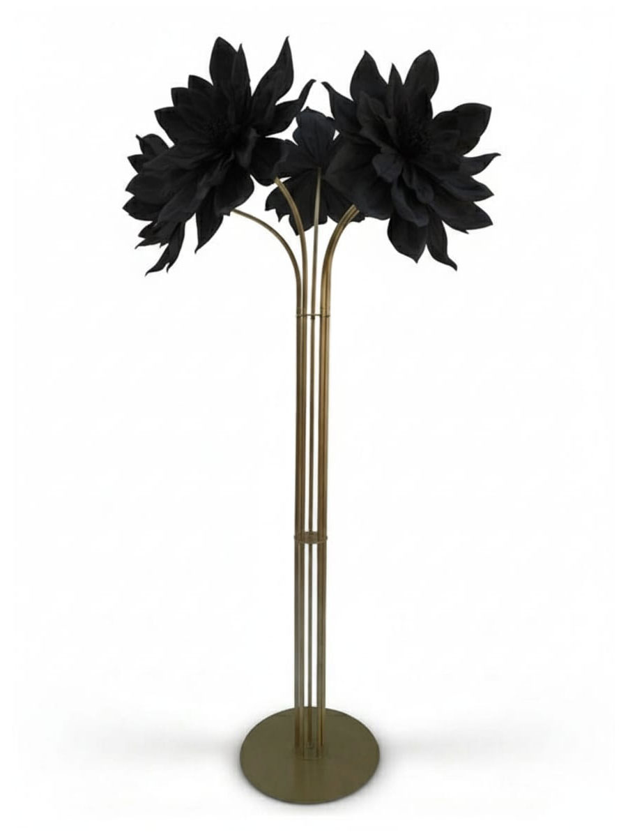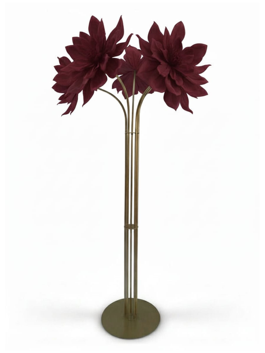 Pięcioramienny stelaż metalowy w kolorze złota z kwiatami gigantami to dekoracja stworzona z myślą o wyjątkowych realizacjach ślubnych i eventowych.