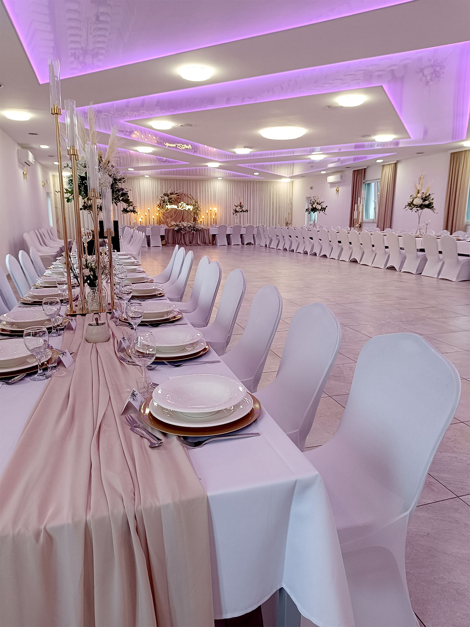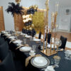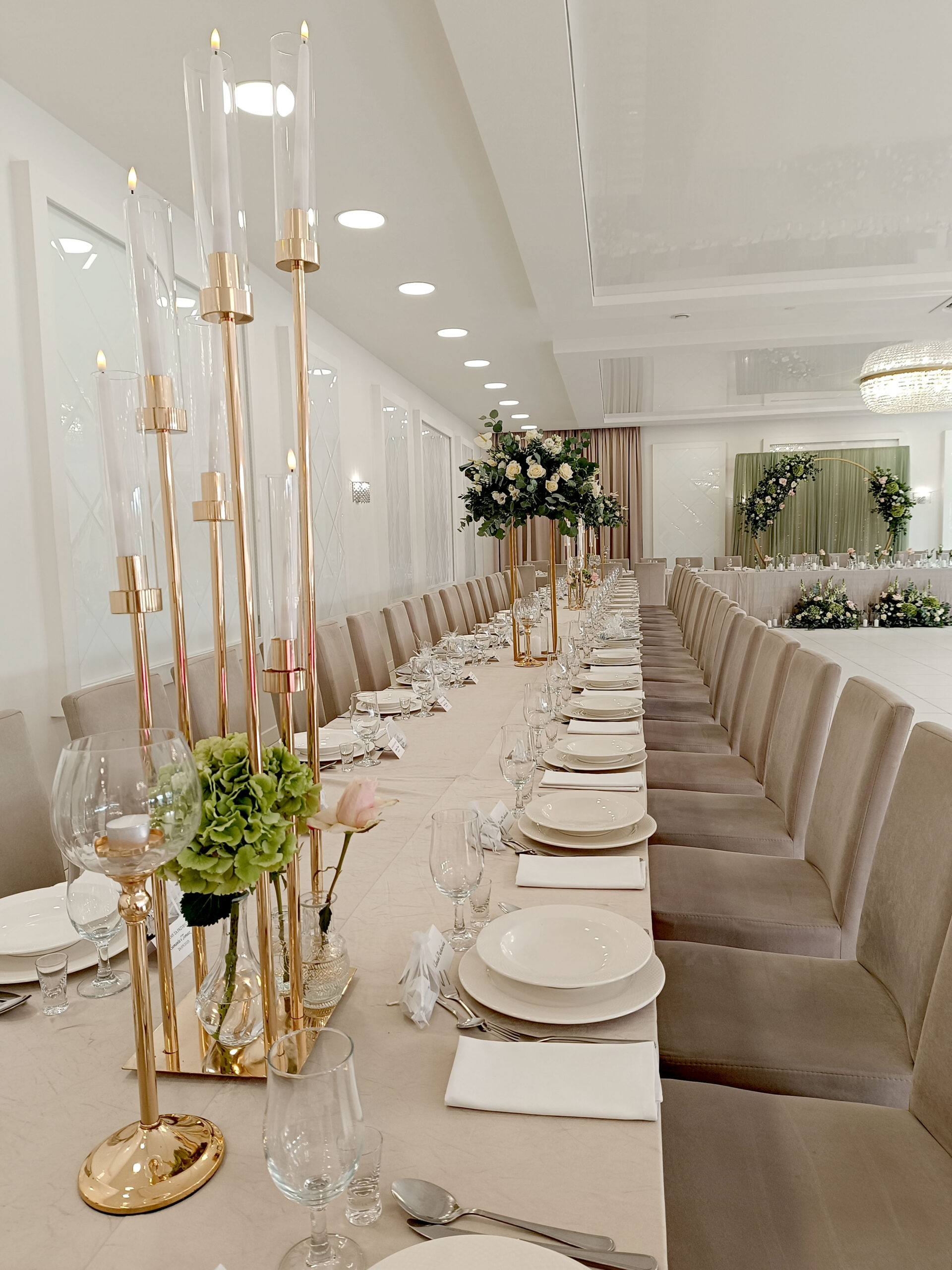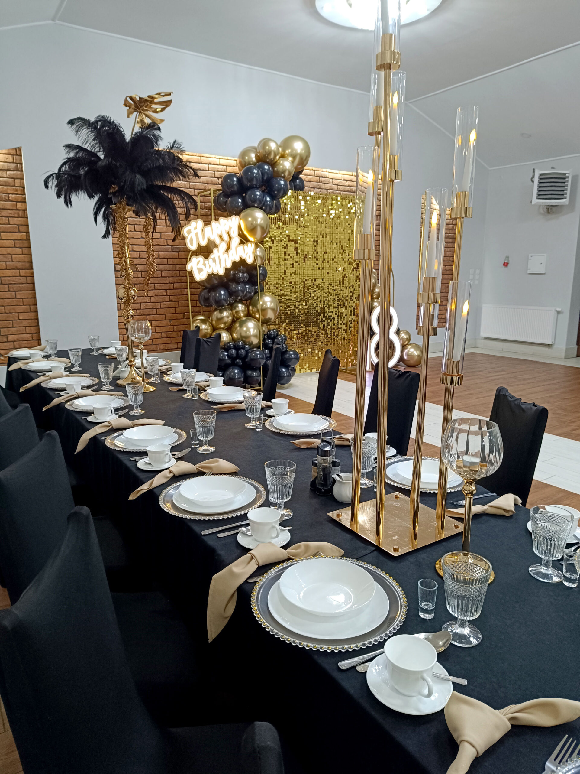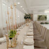 Ten 6-ramienny świecznik w odcieniu złota to dekoracja, która przyciąga wzrok i dodaje przestrzeni uroczystego charakteru. Jego klasyczna forma połączona z eleganckim wykończeniem sprawia, że idealnie sprawdza się na weselach, balach i przyjęciach premium. Zestaw zawiera tuby szklane i świece elektryczne, które tworzą subtelny, równomierny blask.