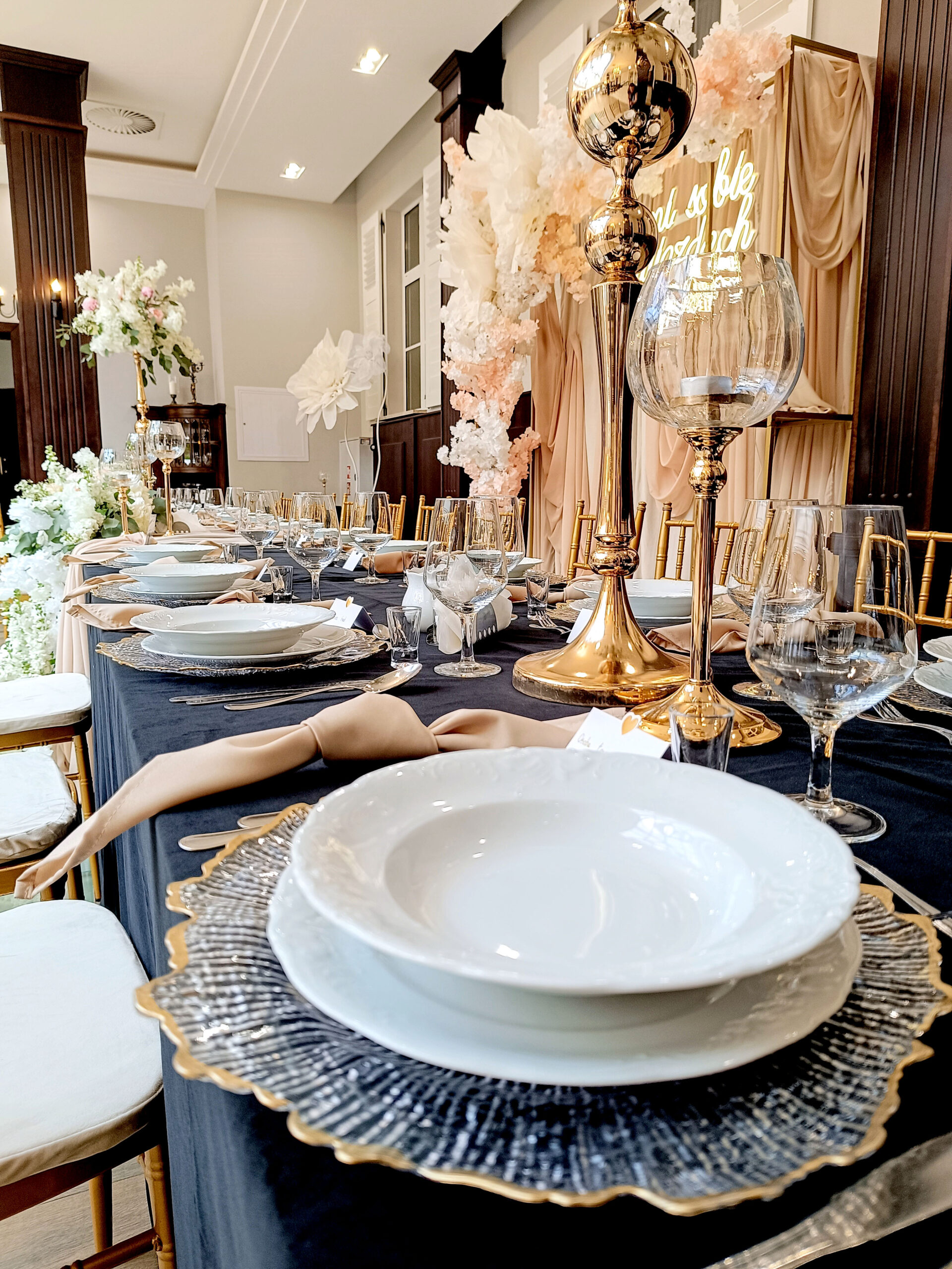 Złota podstawa – stabilna i elegancka, dodaje dekoracji charakteru glamour.