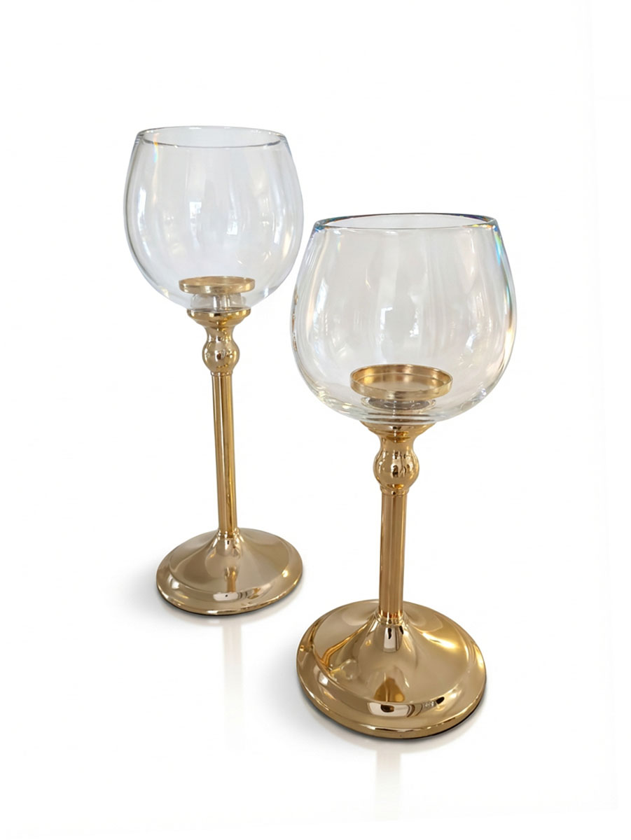 To świeczniki, które idealnie łączą elegancję z praktycznością. Złota podstawa i szklany klosz czynią z nich uniwersalną dekorację do aranżacji w stylu glamour, nowoczesnym i klasycznym.