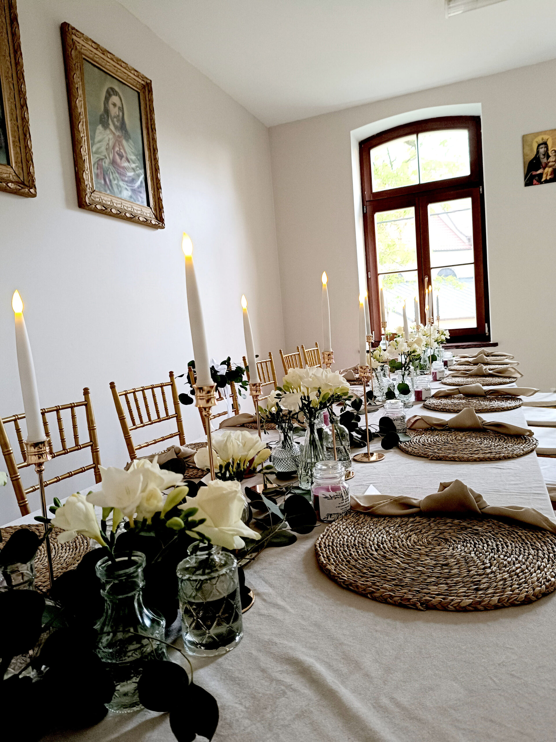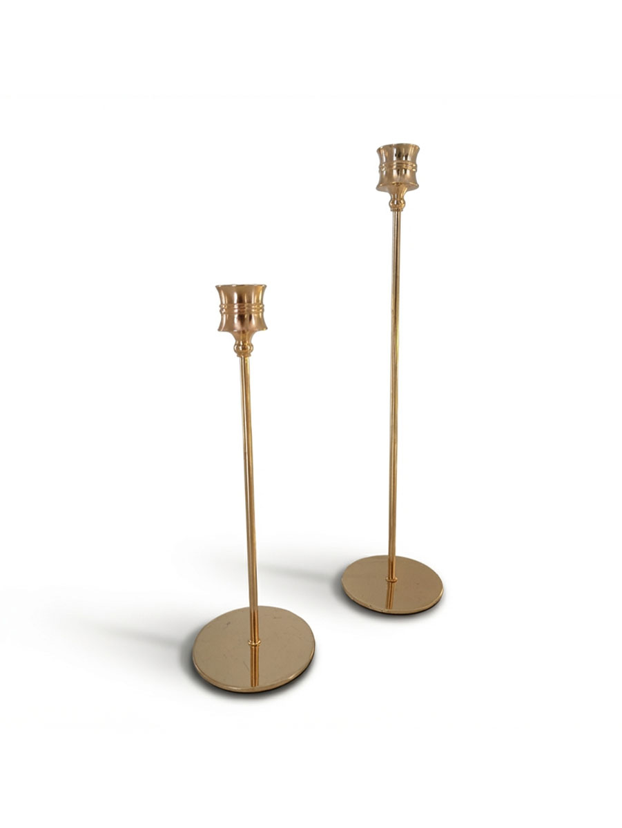 Złote świeczniki z karbowanym wykończeniem to elegancki akcent, który wprowadza lekkość i subtelną dekoracyjność na stoły. Sprawdzają się przy bukietach, girlandach, a także jako samodzielna dekoracja. Zestaw uzupełniają świece LED, tworzące delikatne i równomierne światło.